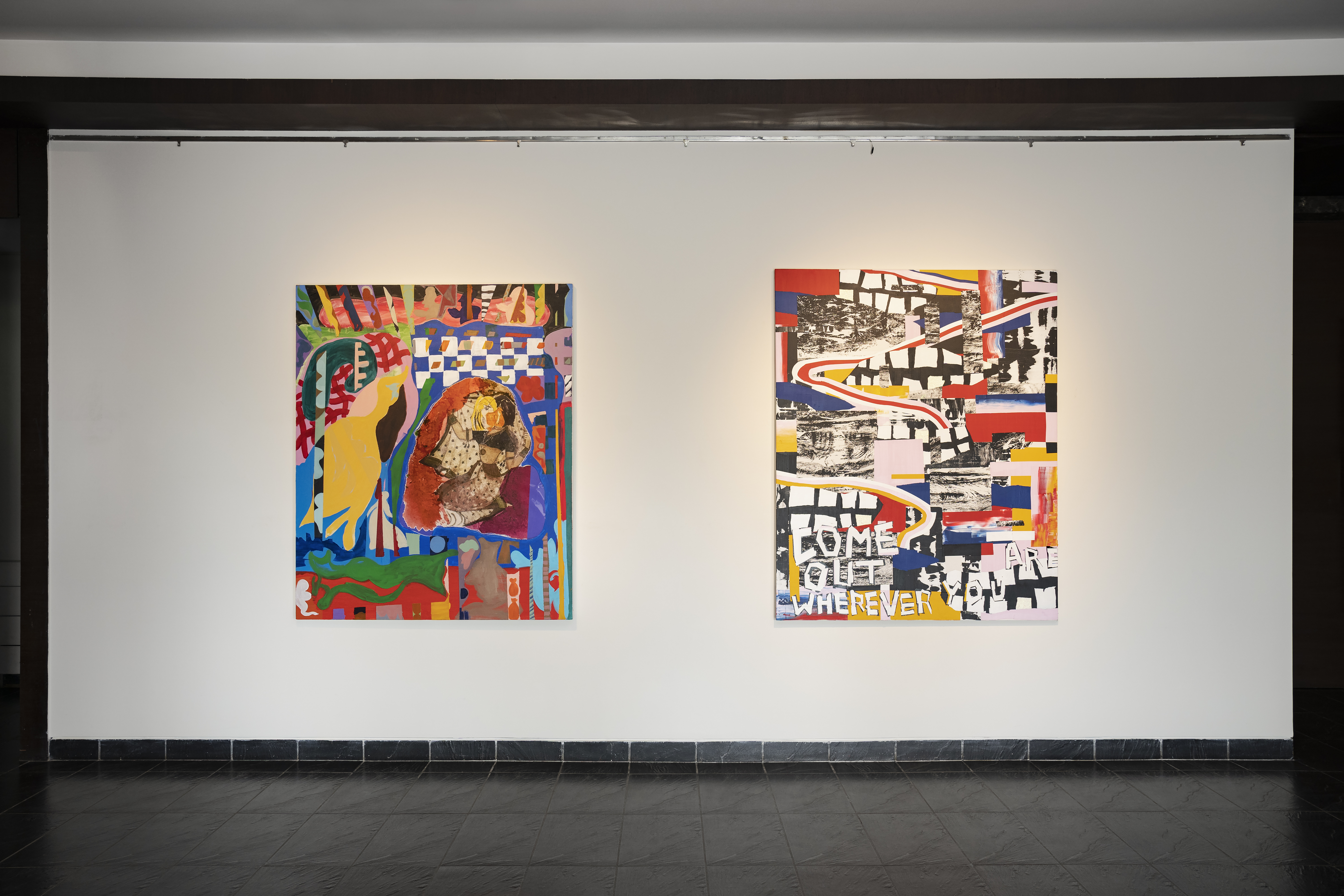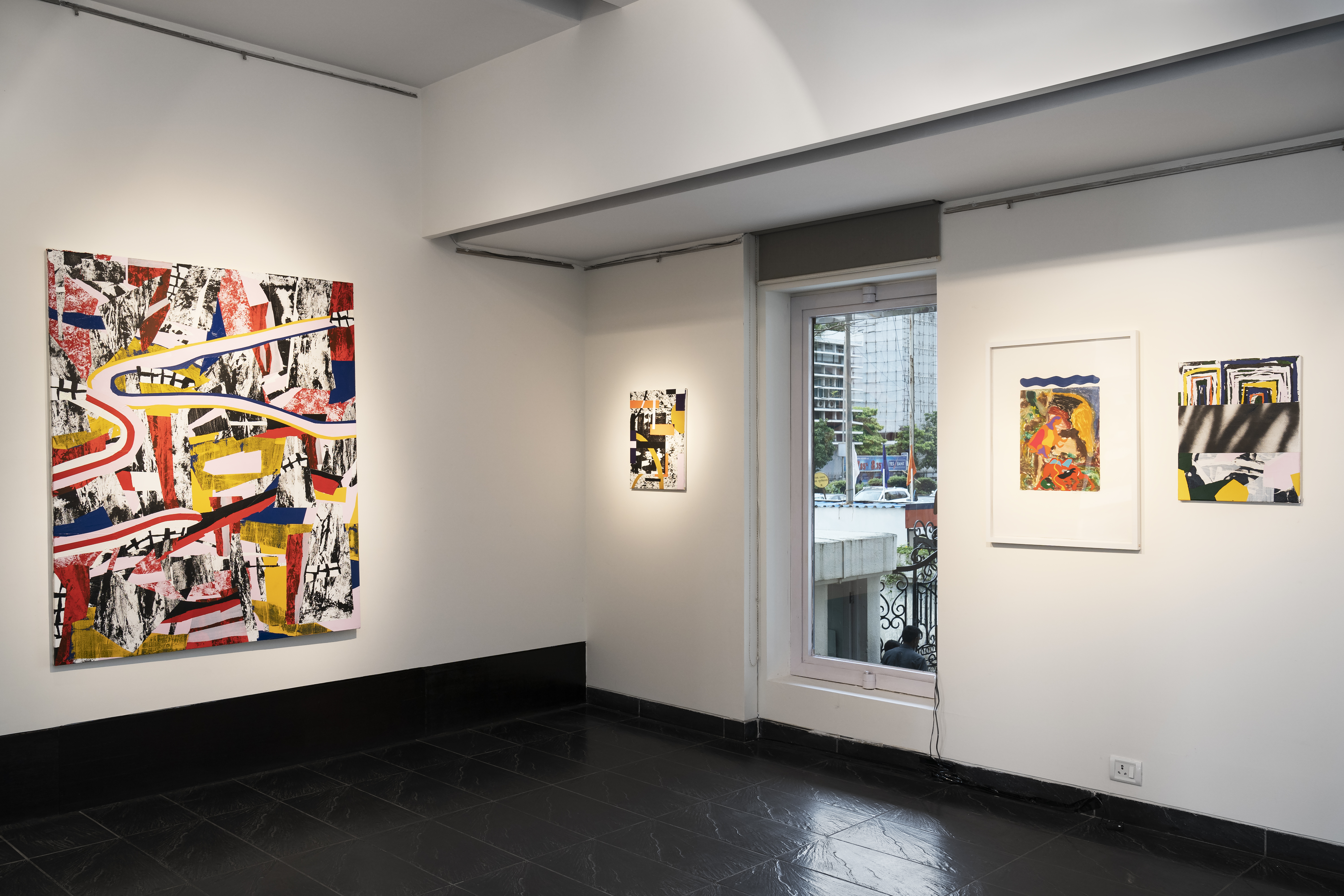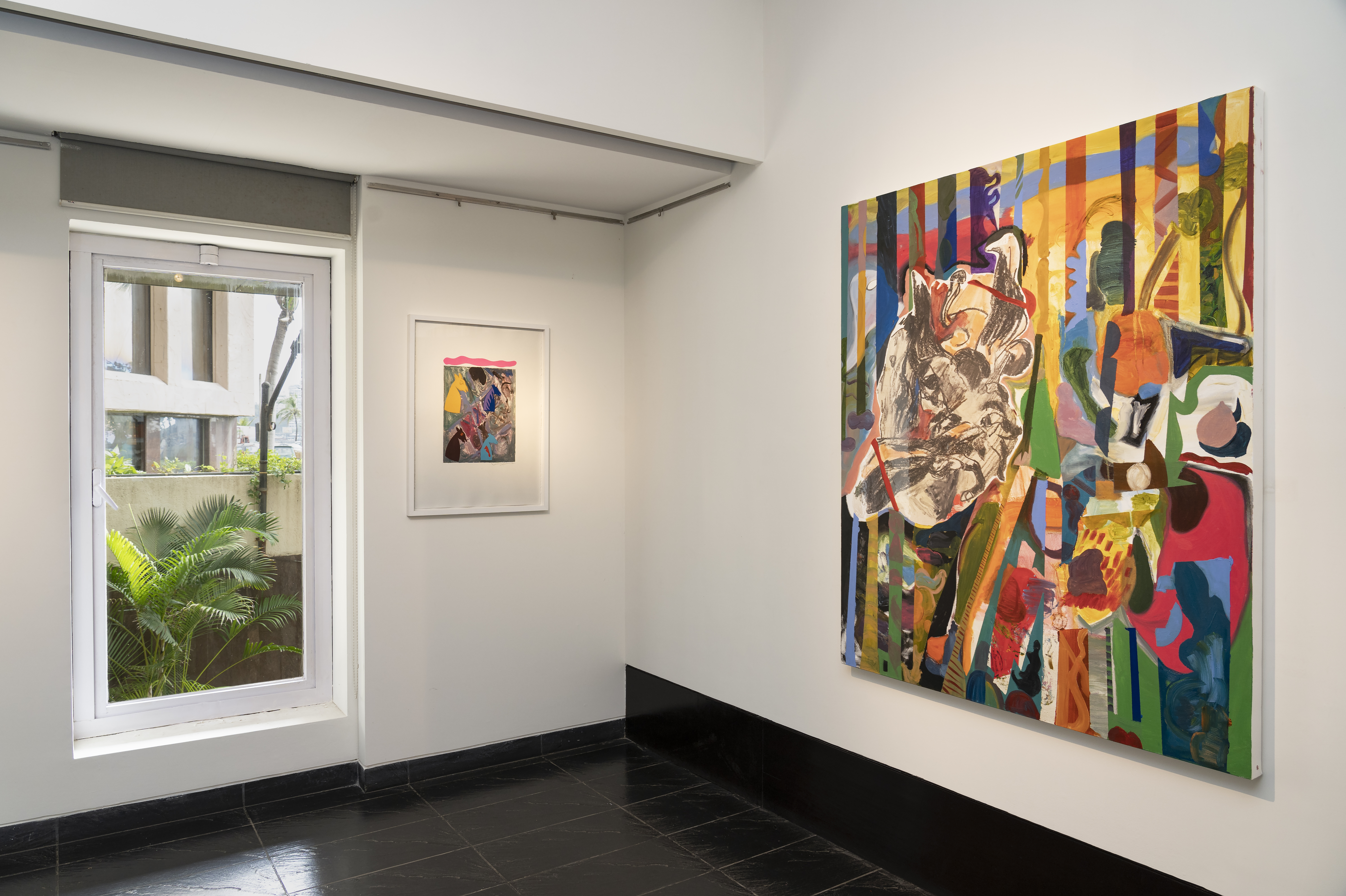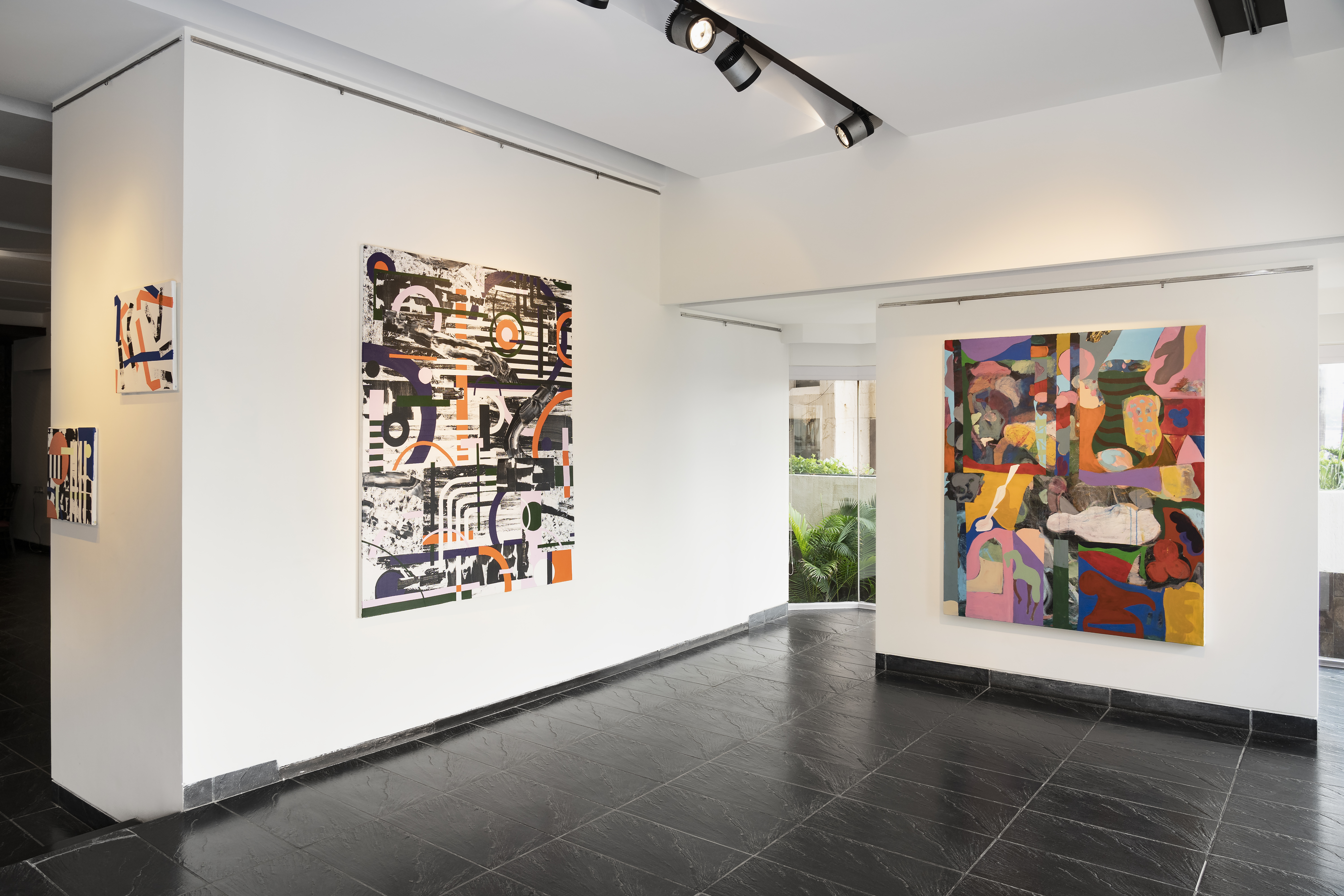 Raz and Mithani capitalise on a bold colour palette and processes of layering to produce a body of work that might be two-dimensional in nature, yet evokes a sense of fluidity and momentum. On one hand Mithani stylistically revives motifs and tales through representation, his body of work can be read like leaflets of a book where narratives come alive. On the other hand, Raz rejects narratives and playfully toys with semiotics, leaving hidden meanings, metaphors and symbols through her work. Familiar visual associations with 'traditional India' boomerang in front of us, but will we be able to place them?